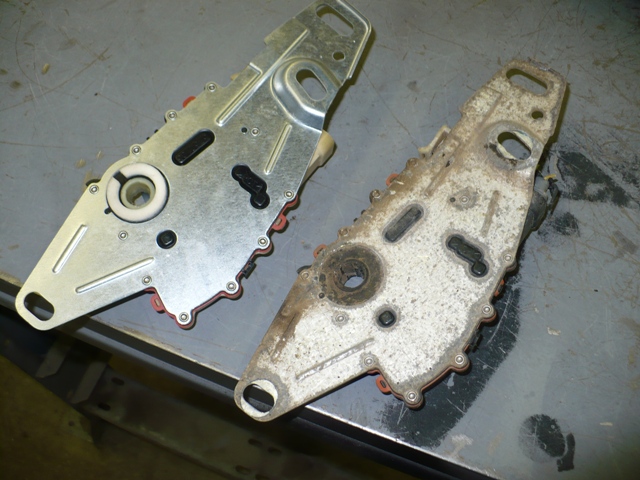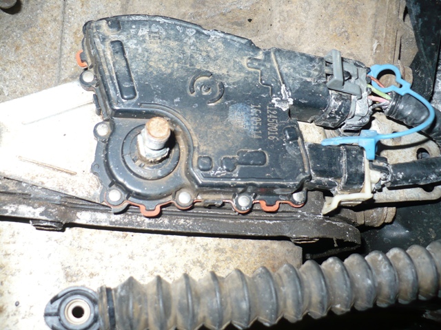 Switch with driveshaft and selector lever removed, old connectors glued to switch |