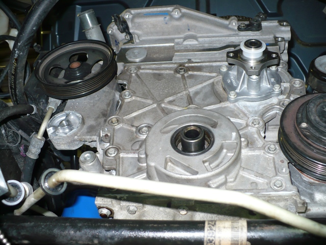 Axle rotated, oil pan removed to remove sump tube from front cover