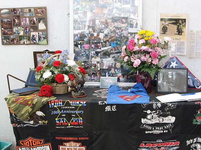 Orlando Florida with their bike and people had come in from all over such as Dave from Ohio and Rachel from Ct. The next day, bikes came pouring in throughout the morning and we had a long memorial ride for Red